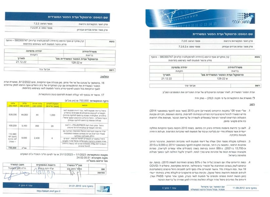 אלא שבדצמבר 2022, חצי שנה אחרי הדיון המודלף וחודשים לאחר פרסום הדו"ח ה"סופי" - משרד הבריאות החליט לחדש את ההתקשרות עם פרופ' ברקוביץ, וזאת באמצעות פטור ממכרז.