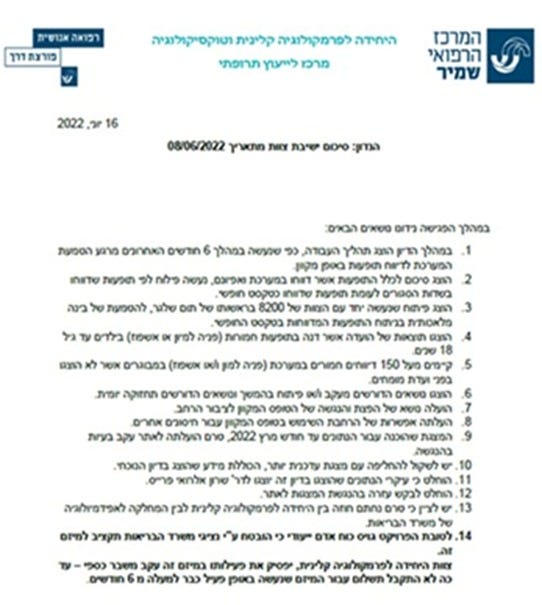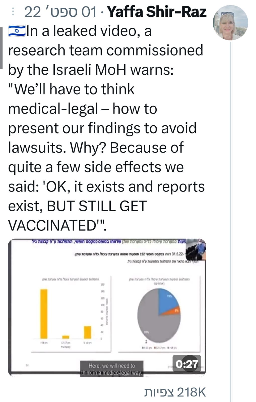 "כאן נצטרך לחשוב באמת מדיקו-לגלית. למה מדיקו-לגלית? כי לא מעט תופעות שהיו אמרנו: 'אוקי זה קיים, ויש דיווח, אבל בכל זאת תתחסנו'. זאת אומרת, צריך לחשוב איך כותבים את זה ואיך מציגים את זה בצורה נכונה. ולא שיהיו אחרי תביעות משפטיות: 'רגע רגע רגע, אתם אמרתם שהכל יחלוף ואפשר להתחסן. והנה עכשיו תראו מה קרה לי. התופעה נמשכת'. גם האספקט המדיקו-לגלי, לפני שאנחנו רצים הלאה, אמיליה צריך לחשוב עליו לפני שרצים הלאה".